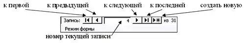 2. Рассмотреть структуру формы Страны. Для перемещения по записям используются кнопки в нижней части формы: