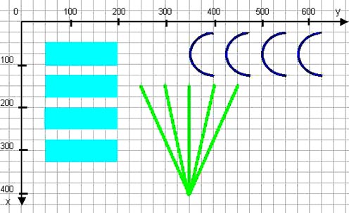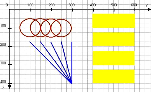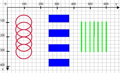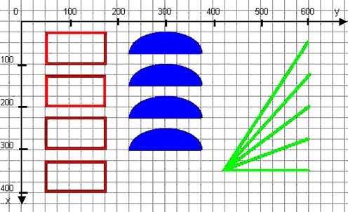 - Если взять за основу, т.е. за параметр цикла координату Y, то какое будет начальное значение параметра цикла, конечное его значение и шаг? (Ответ: начальное значение - 50, конечное - 250, а шаг -50)