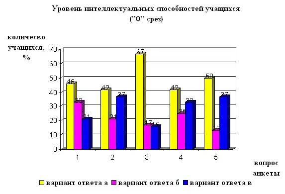 Уровень развития интеллектуальных способностей учащихся («0» срез)
