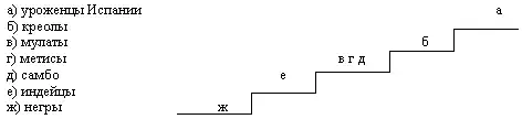 Расположите на лестнице представителей колониального общества в XVI-XVIII веках.