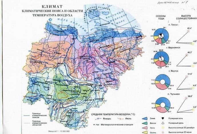 Проанализируйте климатические данные по Якутии стр.16 атласа (Приложение 1 (рис.1), Приложение 2 (рис.2)).
