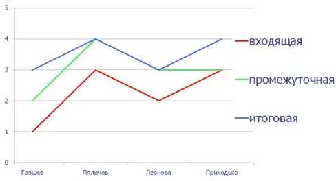 На основании приведенной таблицы делаю сравнительный анализ, при помощи которого можно проследить динамику изменения успешности каждого ученика.