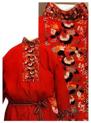 Легко догадаться, что ворот был особенно "магически важной" деталью одежды ведь именно через него в случае смерти вылетала душа. Желая по возможности этому помешать, ворот столь обильно оснащали охранительной вышивкой, иногда содержавшей - золотое шитьё, жемчуг и драгоценные камни, Идя на смертный бой, мужчина разрывал вышивку на груди, как бы выпуская душу на небеса. (рубаха нарядная)