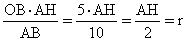 OB = 5, OM = OB . AH = 2r, 4r2 = 100 - (5 + r)2, r2 + 2r - 15 = 0, r1 = - 5, r2 = 3 Ответ: r = 3 см. |