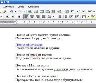 3. Создайте второй документ Microsoft Word , в котором будет 5-6 названий песен.