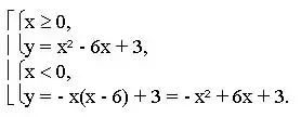 а) у = |x| (x - 6) + 3, имеем совокупность систем:
