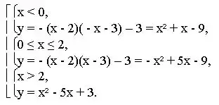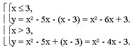 б) у = |х2 - 5х| + х - 3, переходим к совокупности систем: