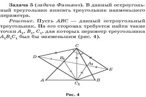 Справедлива замечательная теорема: среди всех треугольников, вписанных в остроугольный треугольник, ортотреугольник имеет наименьший периметр.