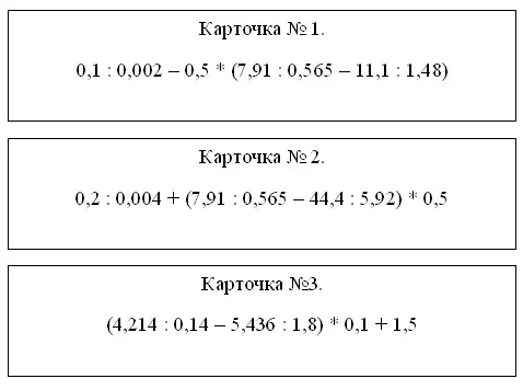 Выполните деление (задание выполняется в тетради, а ответы записываются на листочках, которые раздаются заранее.)