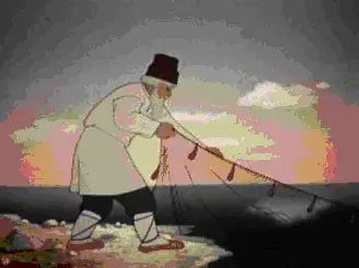 ("Сказка о рыбаке и рыбке" - старик и старуха.)
