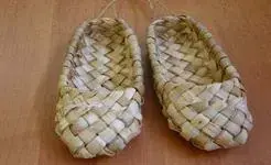 Женской обувью служили кожаные полусапожки, коты, отороченные вверху красным сукном или сафьяном, а также лапти (Рис.5) с онучами и оборами.
