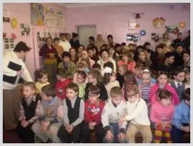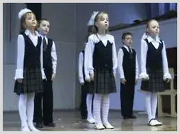 В зале оформлена выставка поделок и рисунков, на стенде - комплект учебников для 1 класса. Звучит музыка. На стене развешана фотовыставка.