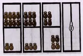 Задача: В первый день Муха опустошила все горшочки с медом в первом шкафчике, во второй день - во втором, в третий день - в третьем шкафу. Остался только последний шкафчик. Но он закрыт. А откроется он только в том случае, если мы поможем Мухе отгадать, сколько горшочков стоит на каждой полке в этом шкафу. Существует закономерность между количеством горшочков во всех шкафчиках.