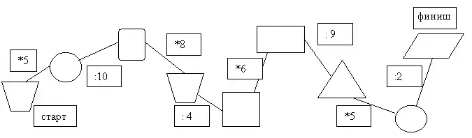 б) Сосчитай математическую цепочку (вставь пропущенные числа и найти значение, оно должно быть в закрашенном квадрате)