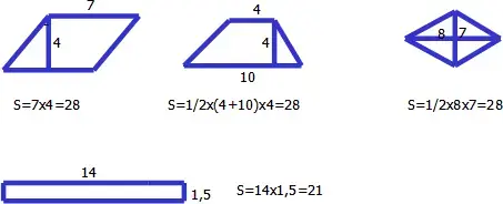 - Четырёхугольник, площадь которого равна произведению его основания на высоту.