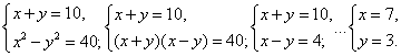 3 ученик. Тема «Решение систем уравнений с двумя переменными с помощью формул сокращённого умножения» (ученик объясняет решение системы из № 543 части I экзаменационного сборника и № 13 и № 5 части II пособия Мальцева, а остальные смотрят и слушают)