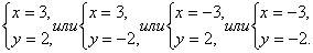 Ответ: (3;2), (3;-2), (-3;2), (-3;-2).