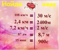 Учитель: среди представленных значений, выраженных в разных единицах измерений величин - скорости, пути и времени, найти пары, удовлетворяющие равенствам.
