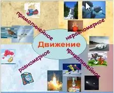 (задание выполняют у доски 2 ученика - работают электронными маркерами, используя инструмент «выделенный элемент», перемещают фотографии физических тел в сектора - прямолинейное, криволинейное, равномерное, неравномерное; некоторые фотографии могут быть отнесены к двум видам движения, тогда размещаем их на границе секторов).