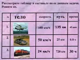 | № | тело | скорость | время | путь |