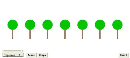 Щелкните по кнопке Сотри. Поэкспериментируйте с проектом «Аллея», задавая разное количество деревьев.