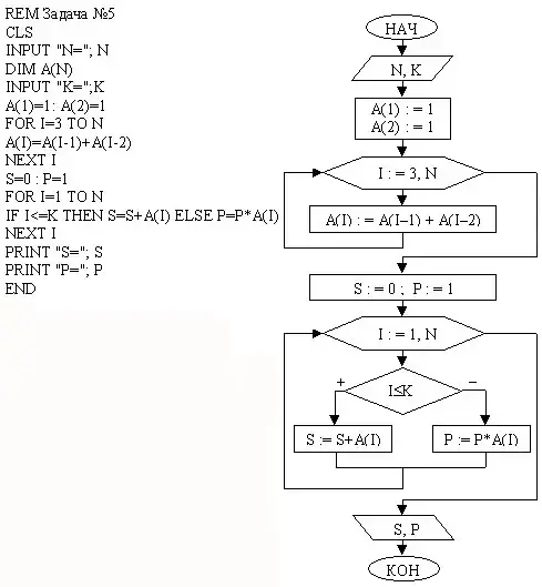 Ответ: Необходимо открыть один цикл "для" по переменной I от K+1 до N, в этом цикле одновременно будем находить и сумму, и произведение элементов массива. А в предыдущей задаче понадобилось открыть два цикла "для". Один для подсчета суммы, другой для подсчета произведения.