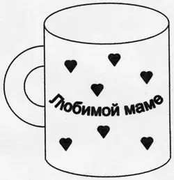 - Посмотрите на кружку, на ней интересная надпись. Казалось бы, все сказано словами, для чего же использованы символы "сердечки"? (Для того чтобы усилить впечатление.)