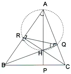 Решение. Пусть Н-точка пересечения высот треугольника АВС. Т.к. <ARH = <AQH = 90о, то около четырехугольника ARHQ можно описать окружность, приняв отрезок АН за диаметр. Построив ее, замечаем, что <BAP = <BQR как вписанные углы, опирающиеся на одну и ту же дугу. (рис. 7)