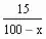 Так как выручка одинаковая, то 15/(100-x)=20*(100-x)/3*x
