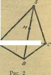 , поэтому решение лучше иллюстрировать на модели. Задать точку М и прямые а, b, например, с помощью тетраэдра (рис. 2).