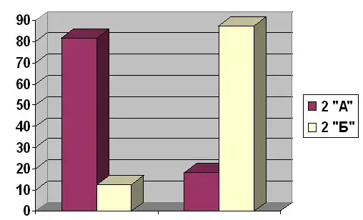 С целью отслеживания эффективности данной программы проводился эксперимент. В эксперименте участвовали два класса (1 "А", 1 "Б" (контрольный класс), [2"А", 2"Б"]).