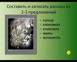 Учащимся предлагается составить небольшой рассказ, используя слова: солнце, хлорофилл, атмосфера, жизнь, фотосинтез.