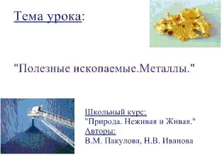 Проект урока по теме "Полезные ископаемые. Металлы". 5-й класс, курс "Природоведение"