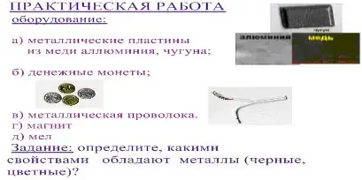 Цель: Определить свойства металлов, выявить различия между черными и цветными металлами.