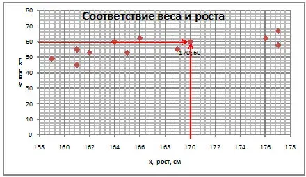 Для построения этой диаграммы нужно в системе координат поставить точки, абсциссы которых - рост, а ординаты - вес.