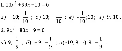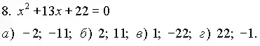 На заключительном этапе урока, для проверки усвоения методов решения квадратных уравнений можно использовать тесты.