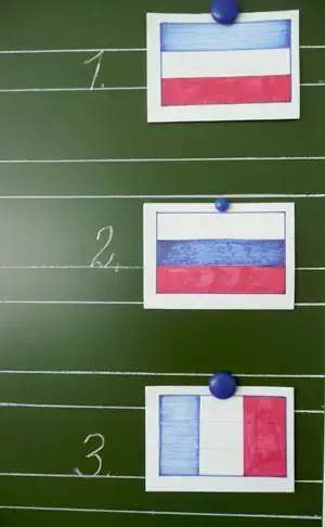 - Подумайте и скажите, какой из флагов является флагом России? (На доске изображение похожих флагов трёх разных государств: Югославии, Франции и России.)