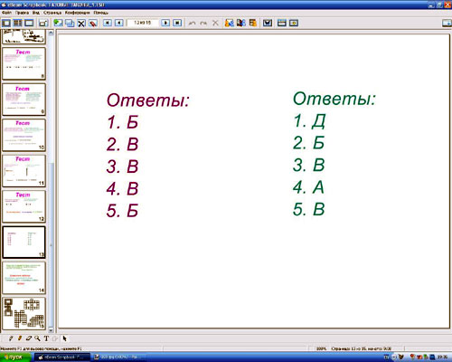 (Открывается страница_13 урока на интерактивной доске и учащиеся проверяют ответы к тесту и выставляют оценки ) <Рисунок 9>
