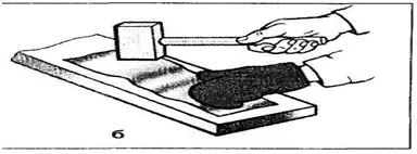 - При помощи киянки согните заготовку по намеченным линиям, используйте оправку при изготовлении ребра жёсткости.