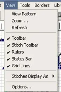 Следующие пять пунктов меню View (Просмотр): Toolbar (Инструментарий), Stitch Toolbar (Инструментарий стежка), Rulers (Линейка), Status bar (Cтрока состояния), Grid Lines (Линии сетки) служат для включения и выключения режима отображения соответствующих элементов окна программы.