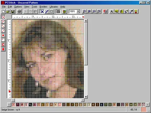 Графический редактор PCStitch является доступным и удобным средством создания сложных схем для вышивания крестом. Он позволяет автоматически преобразовывать любые изображения (фотографии или рисунки) в схемы, редактировать готовые схемы и набирать схемы самостоятельно. В программе PCStitch можно также создавать схемы для вязания и бисероплетения (техники "ткачество", параллельное плетение).