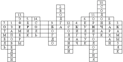 - Одновременное название города и реки Астраханской области. (Камызяк.)
