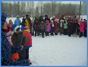Начинали кататься с гор и взрослые. С этого дня по деревне катались на тройках с бубенцами. Родственники навещали друг друга семьями, ходили в гости с детьми. |