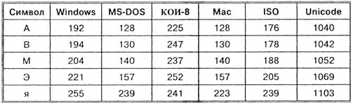 Например, в кодировке Windows последовательность числовых кодов 221, 194, 204 образует слово "ЭВМ", тогда как в других кодировках это будет бессмысленный набор символов.