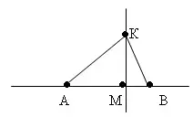 - Итак, четвертое свойство: если точка К - точка на прямой, точка М - точка пересечения перпендикулярных прямых, то отрезок КМ - есть кратчайшее расстояние от точки К до прямой. Отрезок КМ - называется перпендикуляром к прямой.