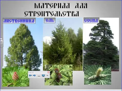 Лучший материал для строительства - хвойные породы деревьев. Назовите, какие вы видите здесь деревья.