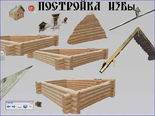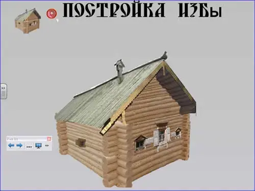(Во время объяснения экскурсовод на ИД собирает модель избы)