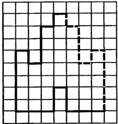 Диктант по клеточкам: ←1 ↓1 ←1 ↓3 ←1 ↑1 ←1 ↓5 →3 ↑2 →1 ↓2 →3. Этот диктант по клеточкам не закончен. Вам необходимо закончить алгоритм и построить фигуру.(Замок.)