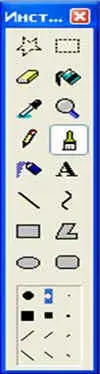 Кисть. Предназначен для рисования точек (щелчком мыши) и произвольных линий (протягиванием мыши с нажатой кнопкой). Допускается выбор размера и формы кисти, которые определяют толщину линии и характер изменения толщины на изгибах.