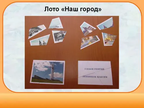 Учащиеся в паре собирают из фрагментов фотографий виды Саратова. Если картинка собрана правильно, на обратной стороне они прочитают свои имена и фамилии.